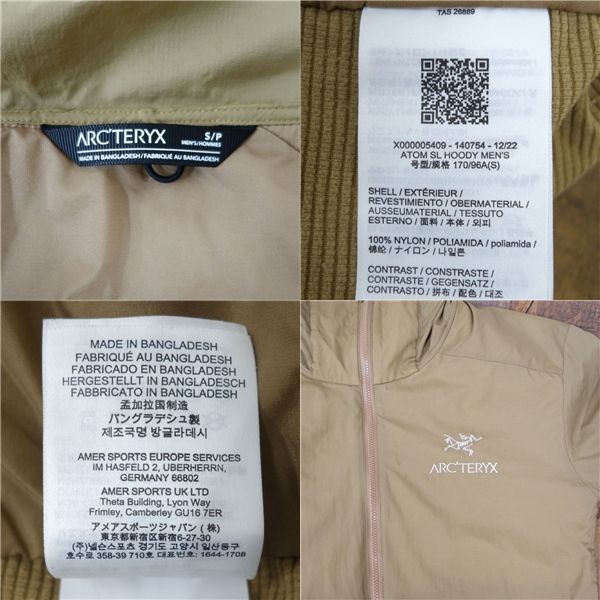 アークテリクス ARCTERYX ATOM SL HOODY アトム SL フーディ メンズS アウター 中綿 ジャケット アウトドア