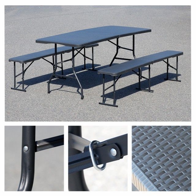 折りたたみ アウトドアテーブル ベンチセット フォールディングテーブル フォールディングベンチ ラタン アウトドア ベンチ テーブル 屋外 庭 テラス ガーデン エクステリア
