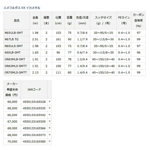≪ 22年 新商品 ≫ ダイワ エメラルダス EX イカメタル K 60 LB-SMT 〔仕舞寸法 96 cm〕