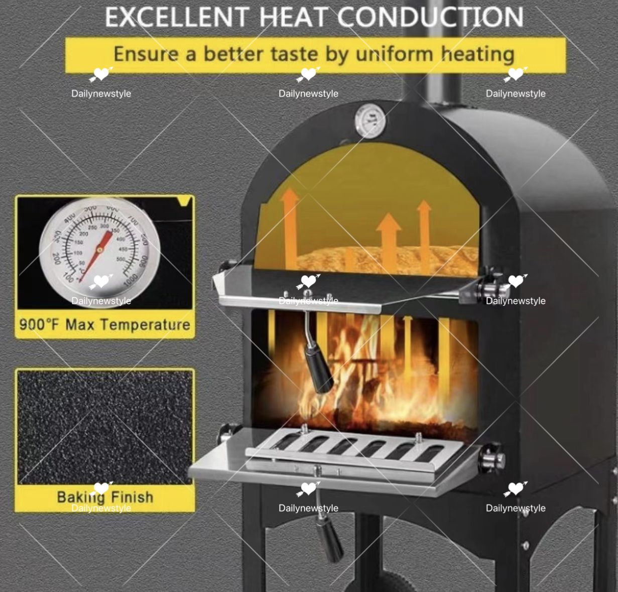 推薦 屋外ピザオーブン12 煙突とピザストーンを備えたポータブル薪ストーブピザメーカー 2層ピザオーブン薪窯 取り外し なホイールを備えた薪ストーブ屋外ピザオーブン