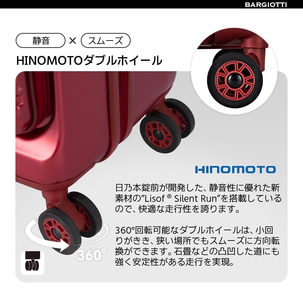 YKKファスナー マルーン Sサイズ 日乃本キャスター 軽量 静音 耐衝撃 ABS PC キャリーバッグ 機内持ち込み 45 L容量 前開き 拡張機能付き キャリーケース フロントオープン スーツケース Bargiotti