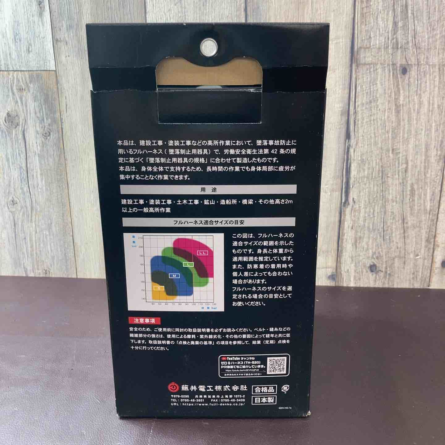 店頭 藤井電工 新規格 ZEROG HARNESS 背当てパッド 着脱式胸D環付き Lサイズ TH-520 V-OT-BL-L-HG