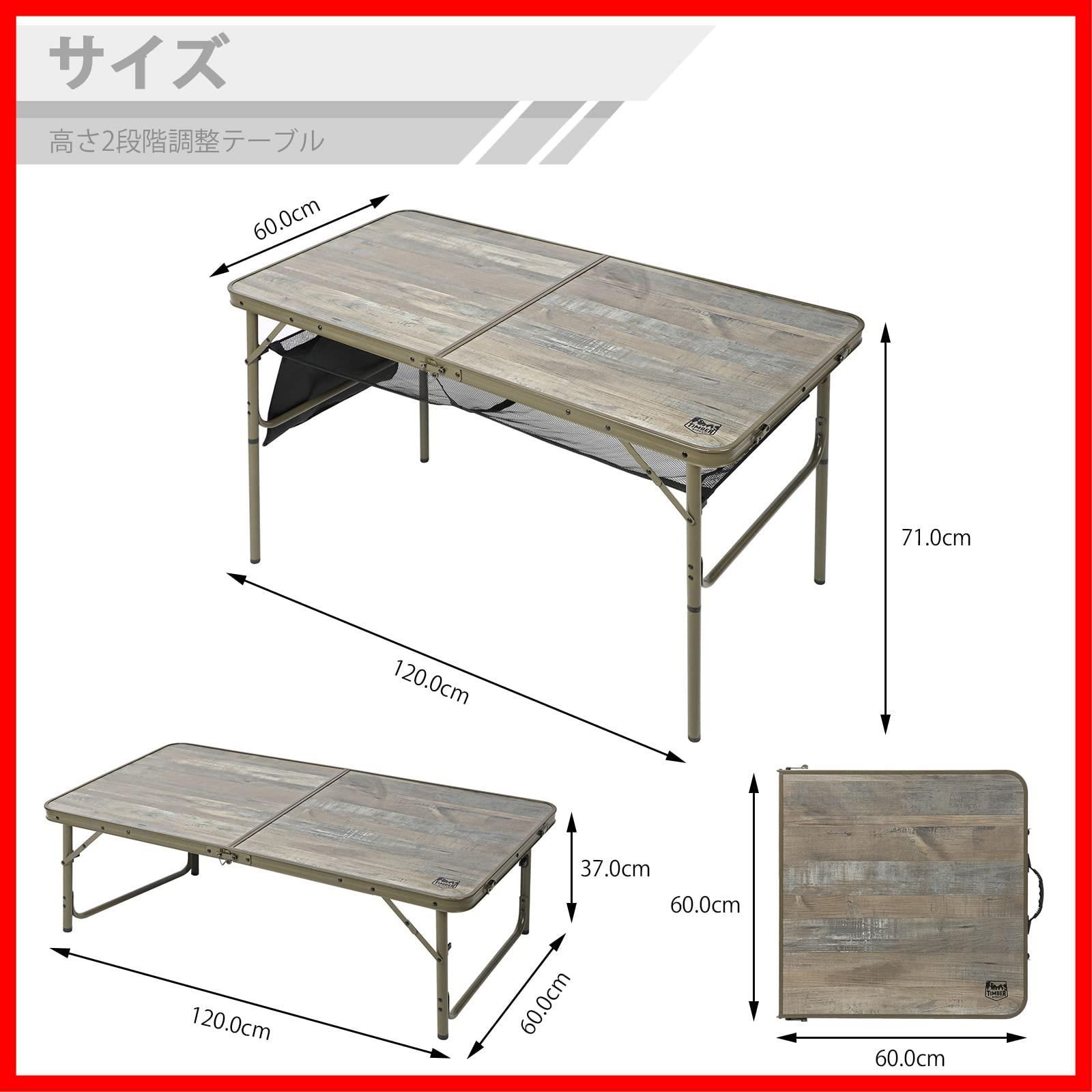 特売 TIMBER RIDGE アウトドア 折りたたみ テーブル 高さ2段階調整 レジャー キャンプ ロースタイル