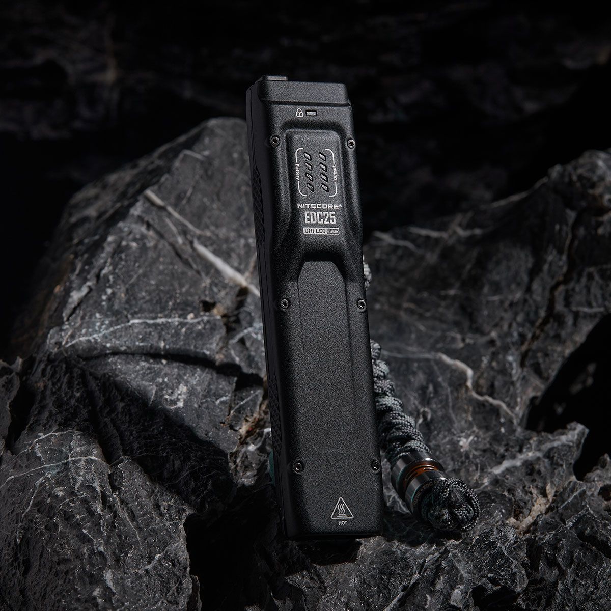EDC25は内蔵のUSB-Cポートを通じて充電が可能で、電力インジケーターがバッテリーレベルの情報を提供します。完全に充電されると、EDC25は最も低いモードで最大55時間の連続使用が可能で、充電時間はわずか1時間強です。さらに、EDC25にはハーフロックアウトモードとフルロックアウトモードの2つのロックアウトモードが備わっています。ハーフロックアウトモードではターボまたはストロボにアクセスでき、フルロックアウトモードでは誤って電源が入るのを完全に防ぎます。コンパクトなサイズ(13.6cm)と軽量(104グラム)のEDC25は、どんなポケットにも簡単に収まります。また、IP54の防水性と1メートルの耐衝撃性を備えており、あらゆる環境での信頼性の高いパフォーマンスを保証します。
