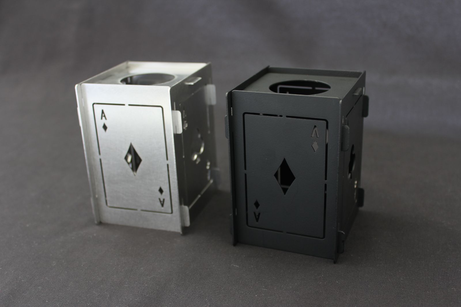 4面にトランプのスート(♠スペード・♥ハート・♦ダイヤ・♣クラブ)を配置し、他にはない個性と高級感を演出します。