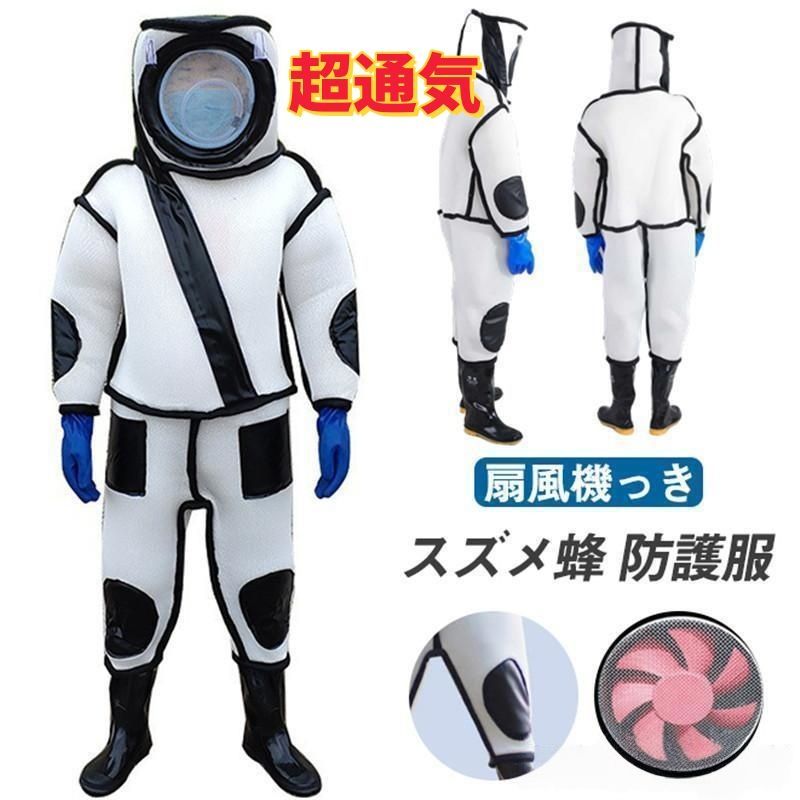 蜂防護服 スズメ蜂 万全防護服 害虫駆除 スズメバチ駆除用蜂防護服 一体式 ハチ防護服 通気性 二重扇風機付属 養蜂器具 保護装備 養蜂用防護服 蜂巣 作業服 蜂対策 つなぎ服 虫よけ 扇風機付属