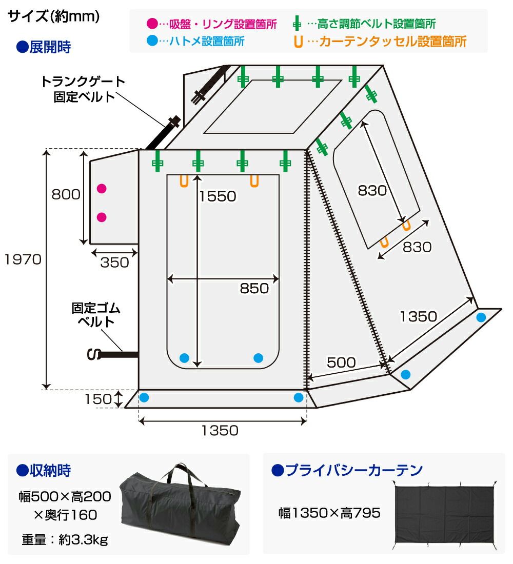 ※当製品は基本的には「跳ね上げ式バックゲート」を対象とした商品です。自立設営やカーサイド設営も出来るため、対象を指定しての販売は行っておりませんのでご注意下さい。