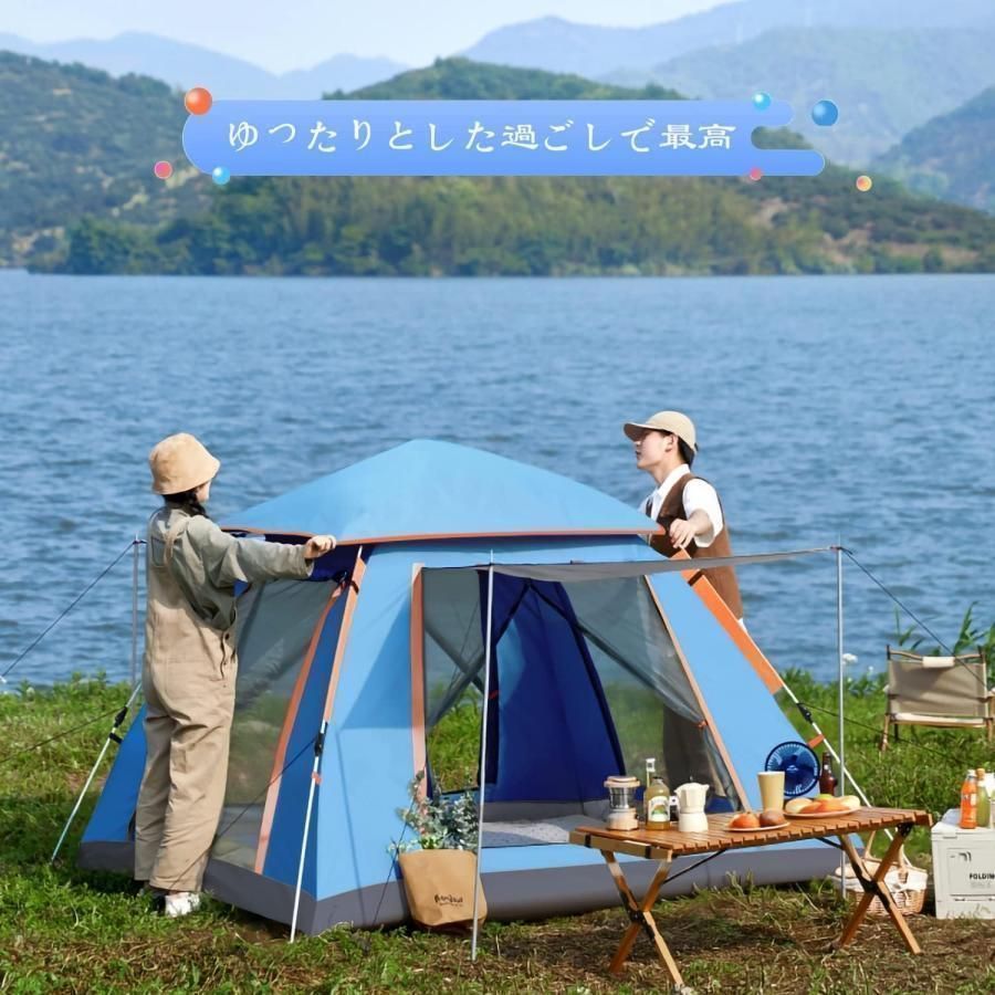 2025最新 テント ワンタッチ 4-6人用 耐水圧3000 mm UVカット 紫外線防止 キャンプ 防水 撥水加工 防風 通気 折りたたみ コンパクト前後ダブルドア 防虫対
