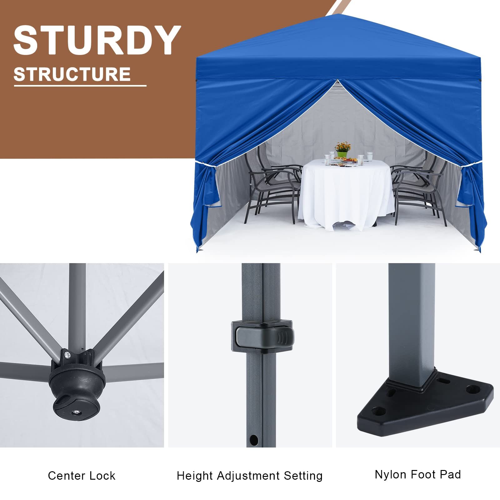 マスターキャノピー ワンタッチタープテント 窓付き 横幕 サイドシート四枚セット アウトドア スチールフレーム 組立簡単 キャンプ用 商用 3 Mブルー