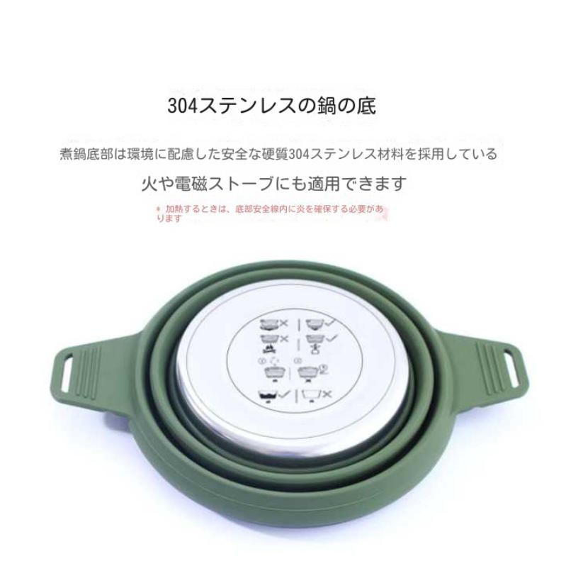折りたたみ式の折りたたみ式鍋シリコン製のウォーキング用鍋携帯用のピクニックカバー鍋ステンレス製のキャンプ用調理器具です