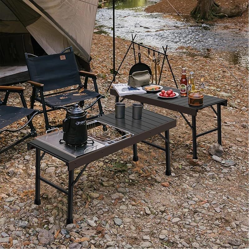 【IGT 様々な組み合わせ】ユニークな組み立て方、16枚のテーブルトッププレートが用意されており、どの単位でも組み合わせることができ(1単位:36×5.3cm)、用途に応じて自由に組み立てたり分解したりできるので。キャンプやバーベキュー、野外料理、海辺、公園、庭、釣り、、 室内でも使用可能です。テーブルの両端には、キャンプ用品やキッチン用品を吊るすためのサイドチューブを装備しています。