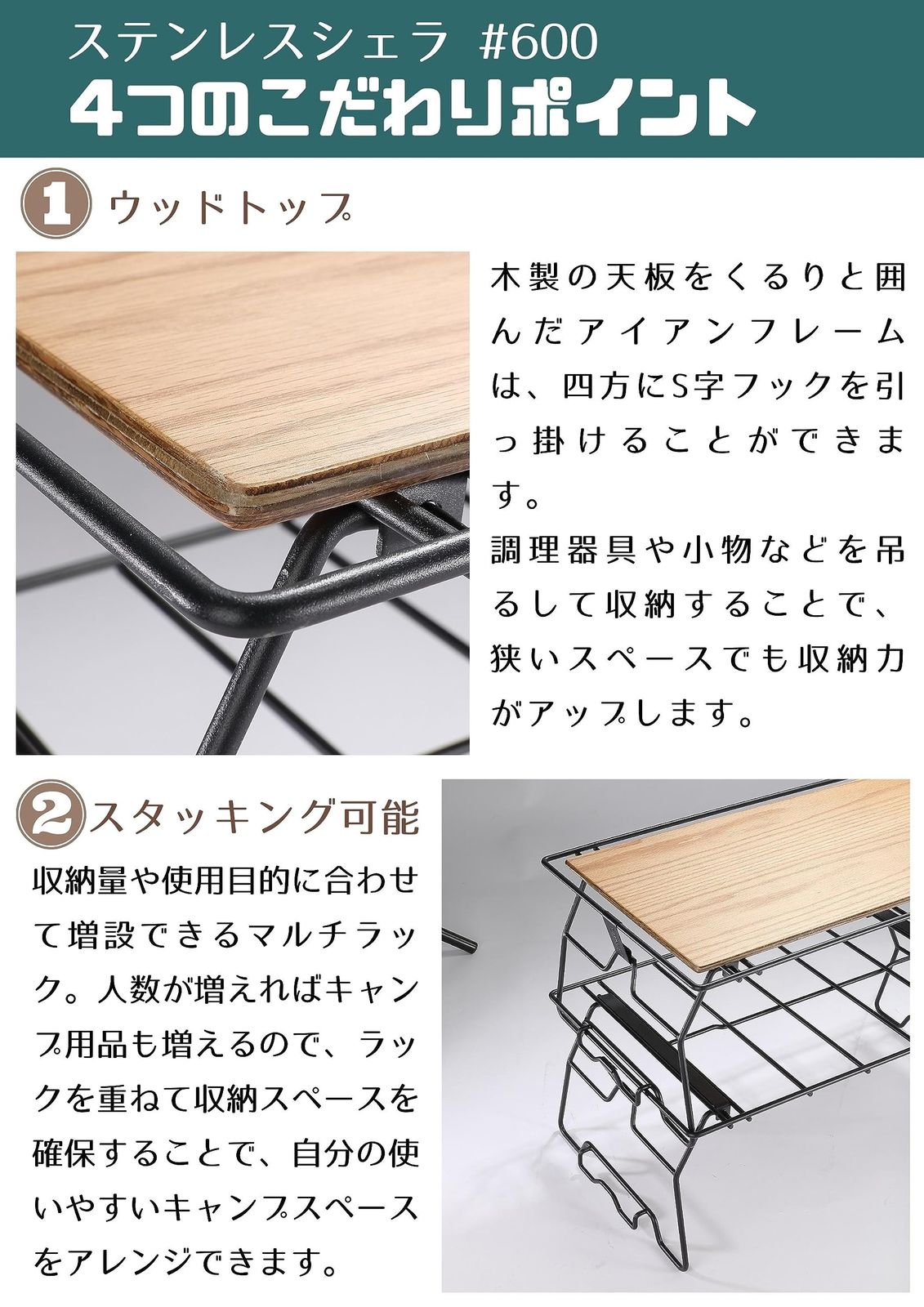 スタッキングラック ウッド ラック アイアン キャンプ テーブル MOON ブラック キャンピングムーン CAMPING T-238 PS