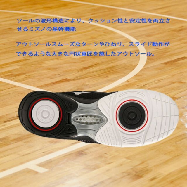 アッパーを人工皮革ベースからメッシュベースに変えることで、屈曲時の柔らかさと軽量化を実現。ダンスエクササイズでのスムーズなターンやひねり動作をサポート。視覚的にも柔らかさを表現できるように、曲線デザインを多く採用。
