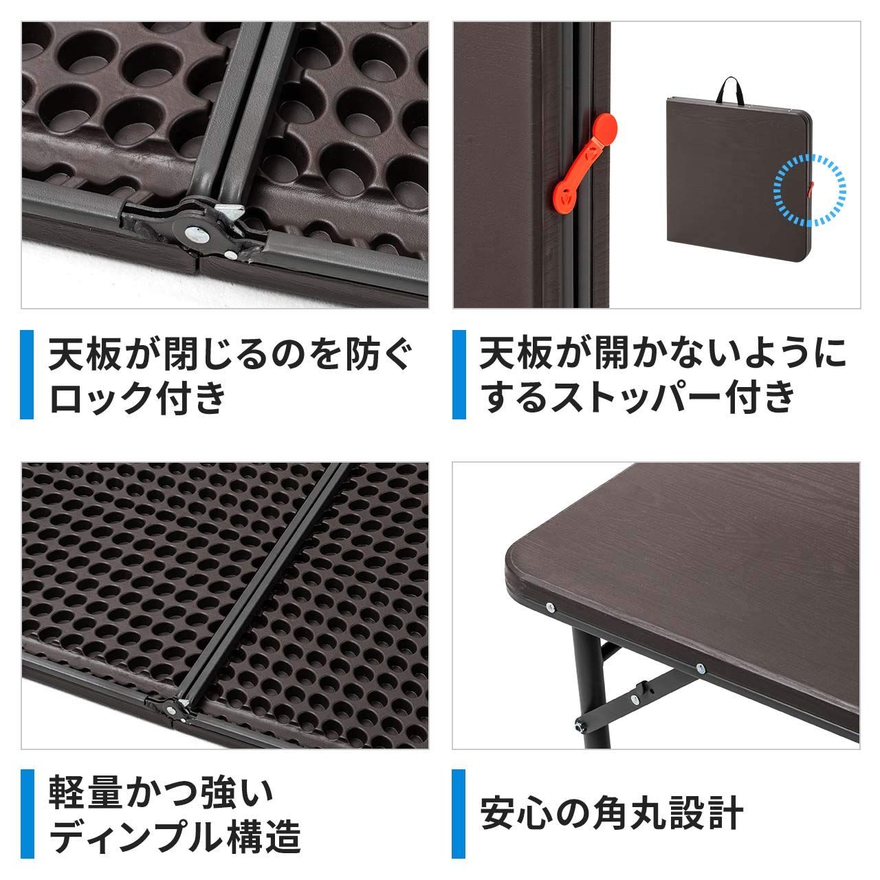 数量 サンワダイレクト 折りたたみテーブル 幅122 cm×奥行60 cm 高さ53 74 耐荷重30 kg アウトドア 樹脂天板 軽量6.3 ブラウン 100-FD 014 M