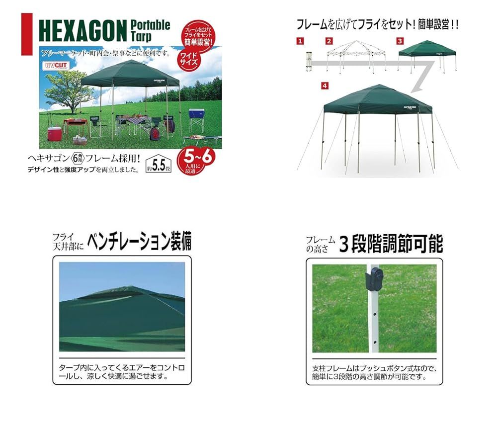 キャプテンスタッグ テント タープ サンシェルター ヘキサゴン ポータブルUA-1056