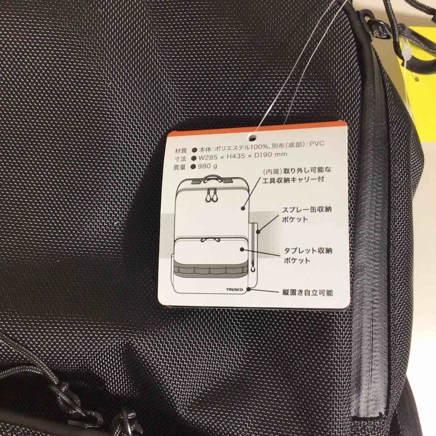 TRUSCO トラスコ KDSBP-BKK ケンドセル リュック ブラック 黒