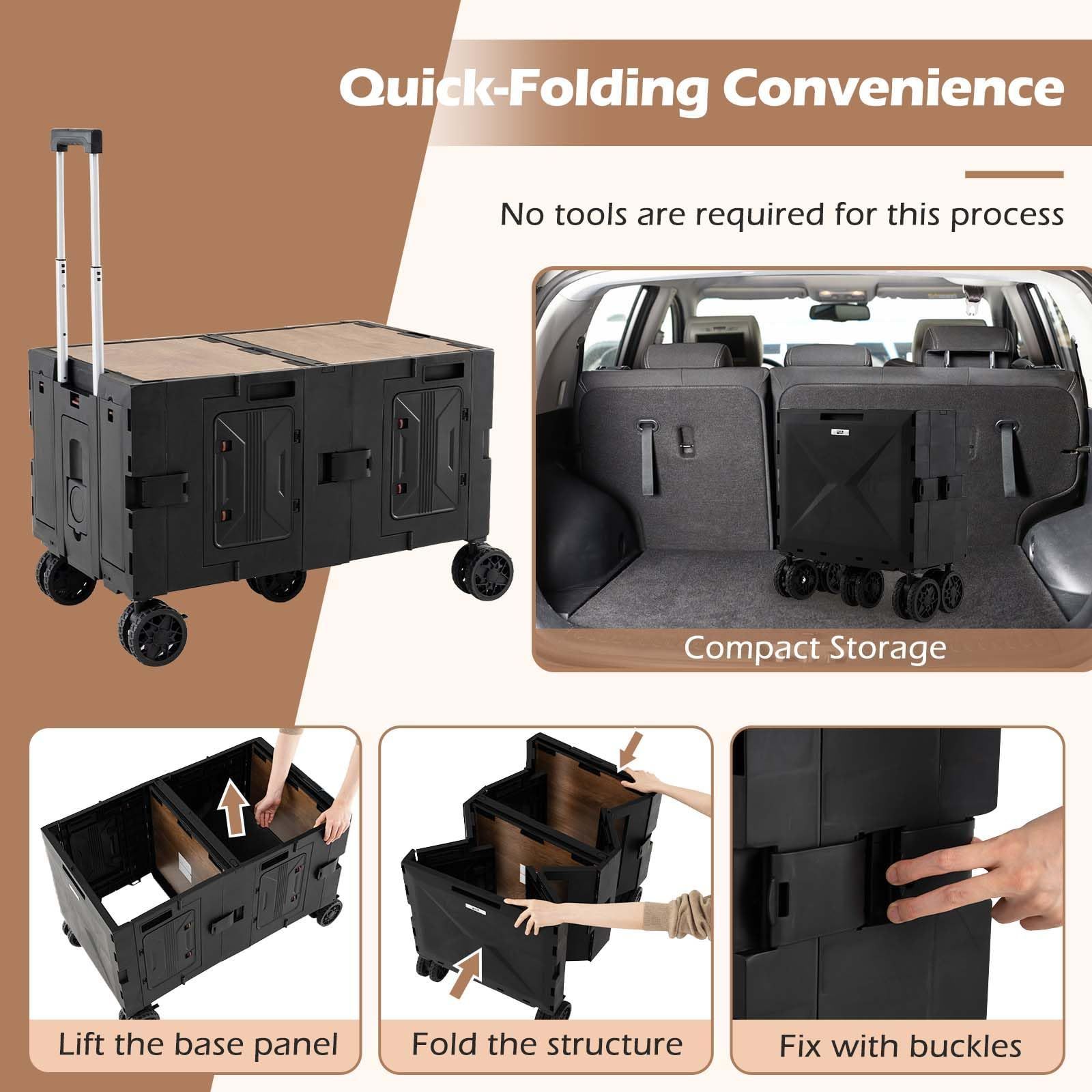 折りたたみ式 キャリーワゴン 天板付き キャスター付き ストッパー付き アウトドアワゴン 耐荷重60 kg キャンプ アウトドア ピクニック キャリーカート 運動会 ビーチ ブラック