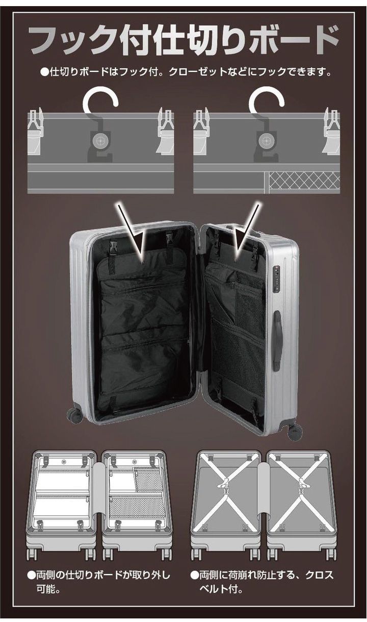 ●ダブルファスナー仕様でスーツケースの容量がアップ。