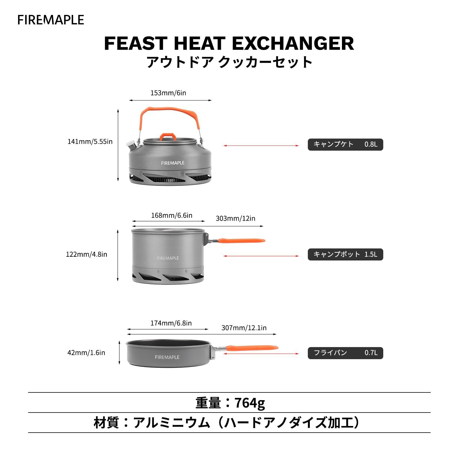 Fire-Maple アウトドア クッカーセット 3点セット アルミニウム製 キャンプポット キャンプケトル フライパン ヒートエクスチェンジャー搭載 コンパクト 折りたたみ式 クッカー アウトドア鍋 蓋付き 登山 アウトドア 調理器具 収納袋付き