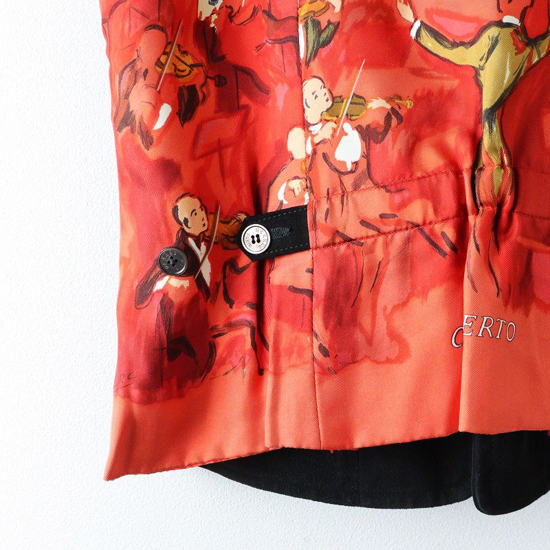 【品名】ヴィンテージ エルメス HERMES CONCERTO コンチェルト レザーシルク切替ジップアップジレベスト//レッドブラック