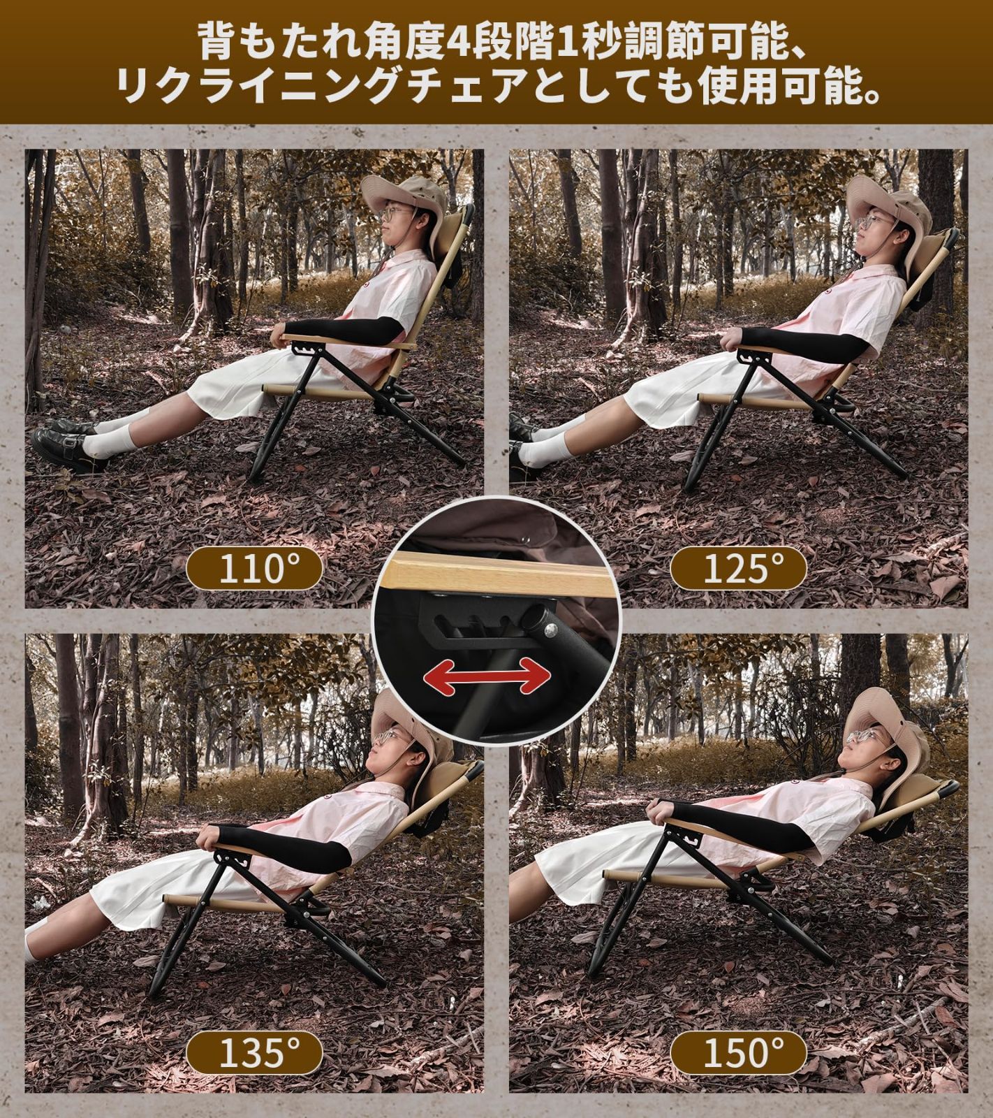 リクライニングチェア アウトドアチェア キャンプチェア 背もたれ角度4段階調節 ローチェア クーラーボックス付き 折りたたみ 軽量 耐荷重150 kg イス 椅子お釣り DesertFox 登山 携帯便利 ピクニック レジャー キャンプ用 STTJBB