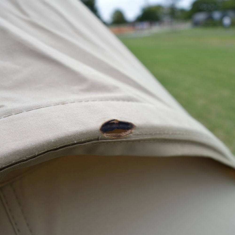 ・ベンチレーション部分に焦げ痕(穴開き)のダメージがございます。