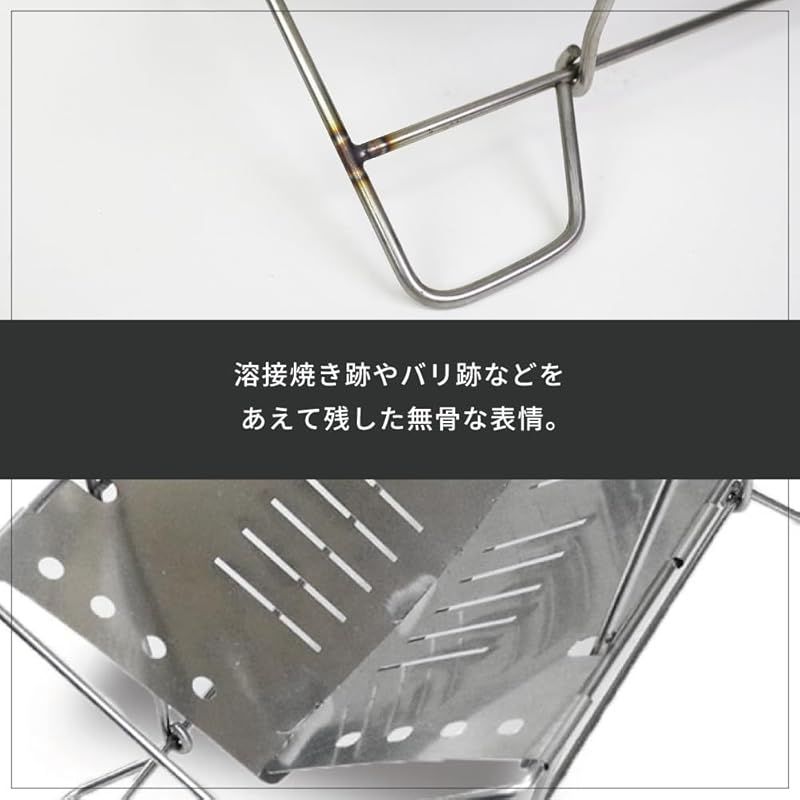<DUCKNOT 焚き火台 B.S.T スパッタシートSET> ※ 2022年度グッドデザイン賞受賞!! ※ 使い勝手を重視した削ぎ落とされたシンプルなデザイン、軽量化に成功! ステンレス製の高品質設計。 高さが選べるゴトクを2個同梱。 ゴトク高さを変られるので微妙な火力調整が楽しめます。 環境にやさしいスパッタシートは2つ折りにしても使えるちょうどいい大きさ。 幅広い熾火台だから火力調整が容易。 上部には市販の網 (別売り)が載せれるのがうれしい! ファスナー開閉の大きく開く間口の収納ケースはアメリカ製ダック生地。 丈夫で洗えるので清潔にご使用いただけます。 ※こちらの商品はバネ材を使用しており火床を押すと動く構造になっております。 薪を置いた際支柱が安定する設計になっております。 ●内容物: 本体 ×1台 ゴトク ×2個 収納ケース ×1個 スパッタシート ×1枚 ●サイズ: 本体 (外寸)/W36cm×H23cm×D20cm 収納ケース (内寸)/W40cm×D28cm×マチ4.5cm スパッターシート/W50cm×D45×厚み0.3 (個体差があります) ●重量: 本体/620g ゴトク/42g×2 収納ケース/166g スパッターシート/約47g (個体差があります) ●素材: 板材/ステンレス SUS304 バネ鋼 線材/ステンレス SUS304 ハード鋼 スパッタシート/フェルト 収納ケース/アメリカ製ダック生地●生産国:日本 ※意匠登録済