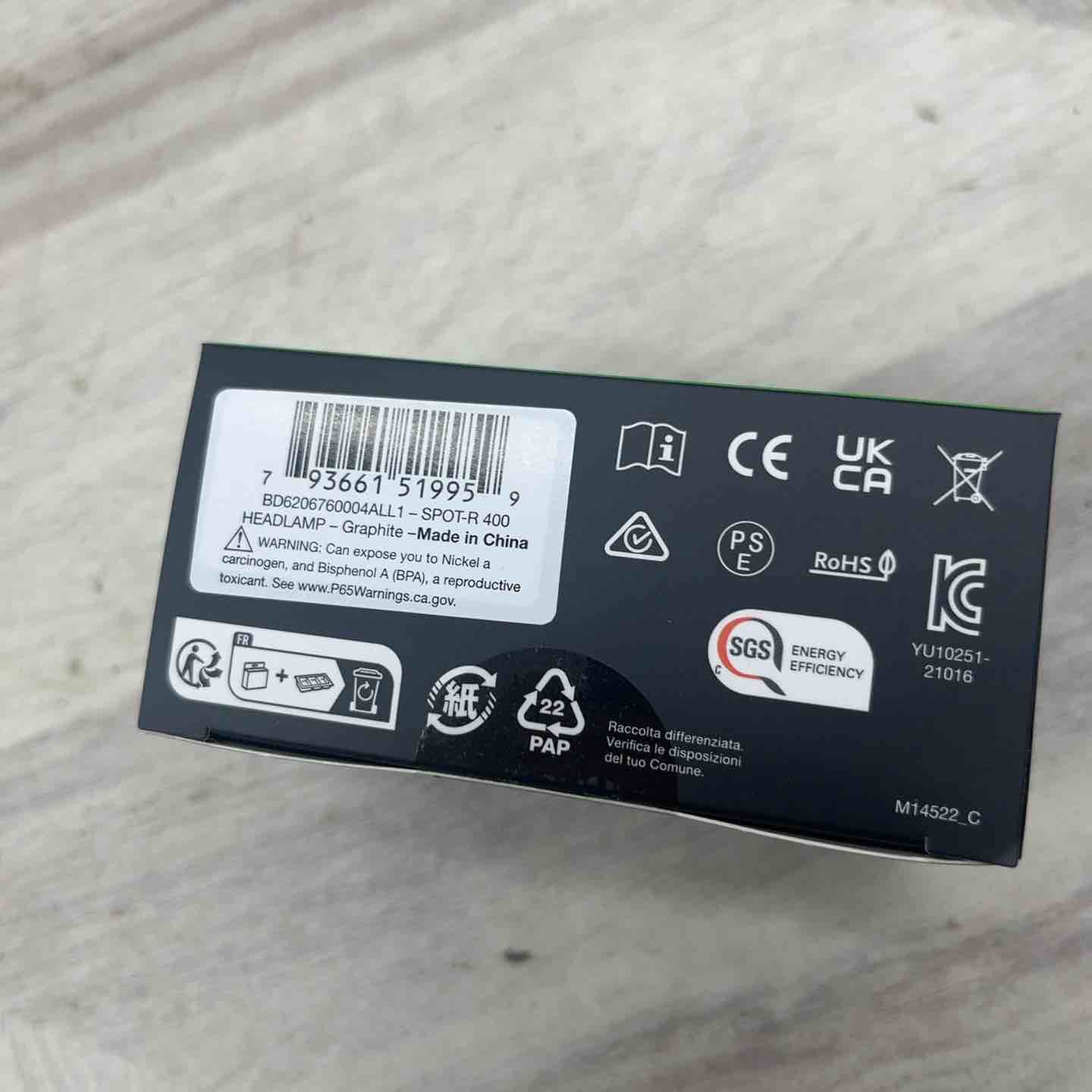 Black Diamond スポット400-R グラファイト コンパクト 充電式
