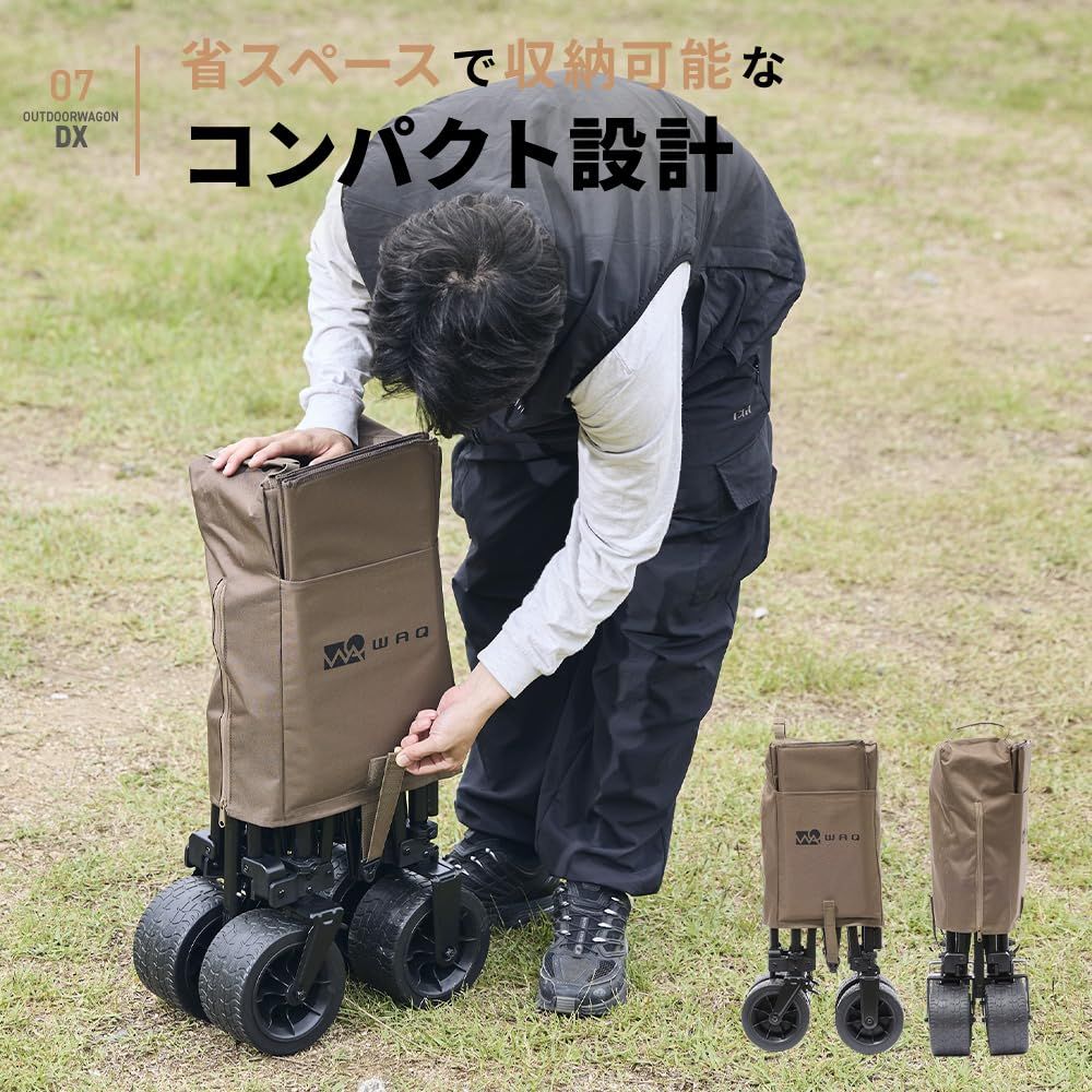 【累計販売12万台超のアウトドアワゴンに新型が登場!アウトドアワゴン DX】約12万人のユーザー様にお使いいただいているWAQアウトドアワゴンが大幅アップデート!色んな荷物をドンと収納、ブレーキ機能まで搭載した更に使いやすくなったアウトドアワゴン。
