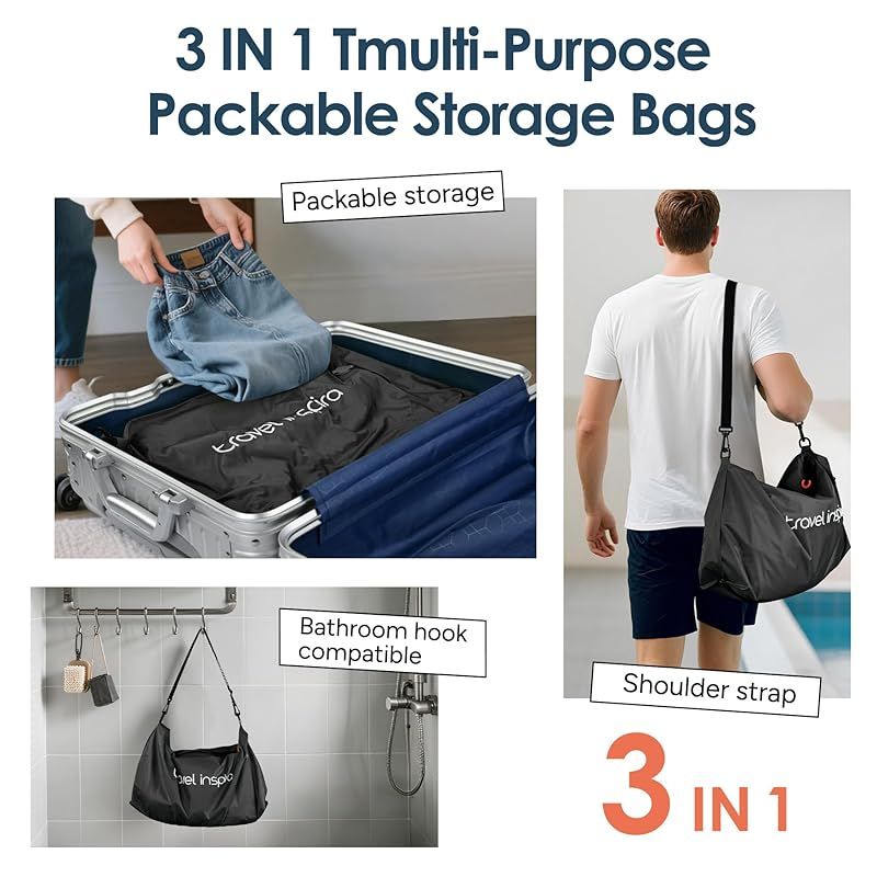 Travel Inspira 圧縮トラベルバッグの特長 旅行や家庭収納に必要な機能をシンプルに集約した圧縮袋です。TPU素材による耐久性と防水性、22Lの実用大容量を備え、衣類のコンパクト収納を実現します。 主な機能と利点 1. 実用的な収納力 衣類を最大50%圧縮可能。22L容量で大人3泊分の衣類(Tシャツ5枚+ジーンズ2本+下着類)が収納できます。スーツケース内の空間効率化に貢献。 2. 二通りの圧縮方式 ポンプ付きモデル:手動圧縮か真空ポンプ(約30秒)を選択可能 ポンプ無しモデル:手で押す簡易圧縮 3. 日常使いに適した耐久性 ポリエステルとTPUの複合素材で、摩擦による破損を軽減。シワ防止加工により衣類を平坦に保ちます。 4. 基本的な防水・防塵性能 ヒートプレス加工のジッパーとエアホールで、水漏れやホコリの侵入を抑制。浴室での吊り下げ保管にも対応。 5. シンプルなマルチユース 収納ボックス・ショルダーバッグ・浴室フック掛けの3形態で使用可能。 推奨使用シーン 旅行時:スーツケース内の衣類整理 衣替え時:季節物衣類の省スペース保管 短期入院:洗面用具や着替えの防水収納 日常利用:毛布や厚手の衣類の圧縮保管 製品基本仕様 素材:ポリエステル+ TPU :製造不良に対して1年間対応