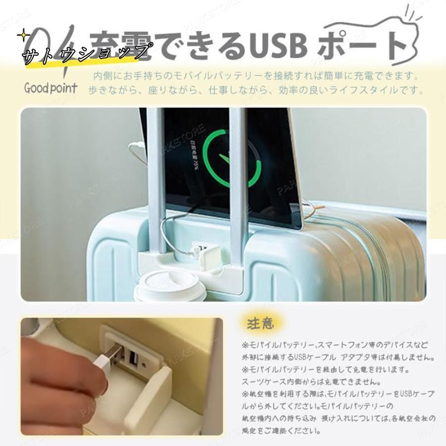 【商品ポイント】:1.スーツケース上部にスマホ等の充電に便利なUSBポートを装備!