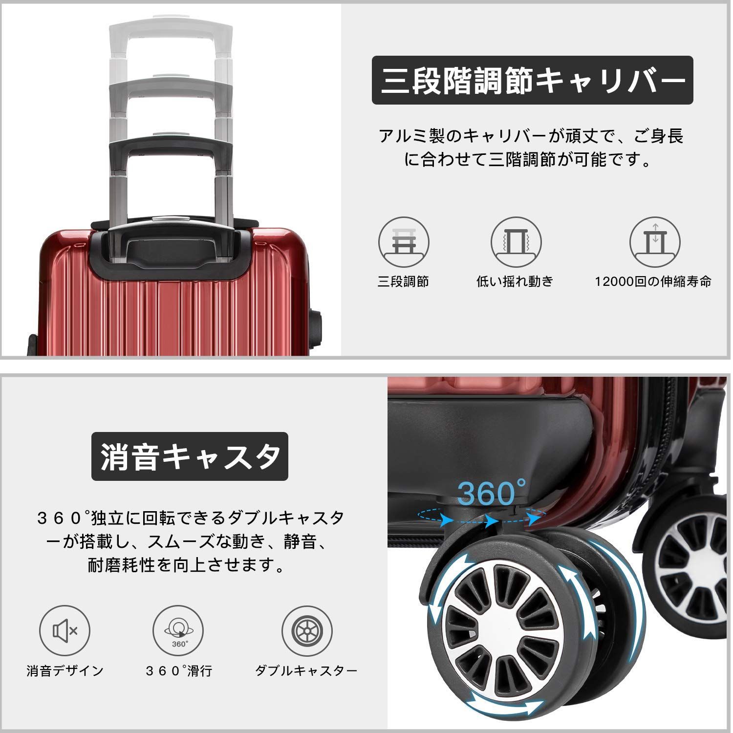 [VARNIC] スーツケース キャリーバッグ キャリーケース 超軽量 大型 静音 ダブルキャスター 耐衝撃 360度回転 TSAローク搭載 ファスナー式 旅行 ビジネス 出張 (レッド, Lサイズ/98L(7泊~長期旅行))