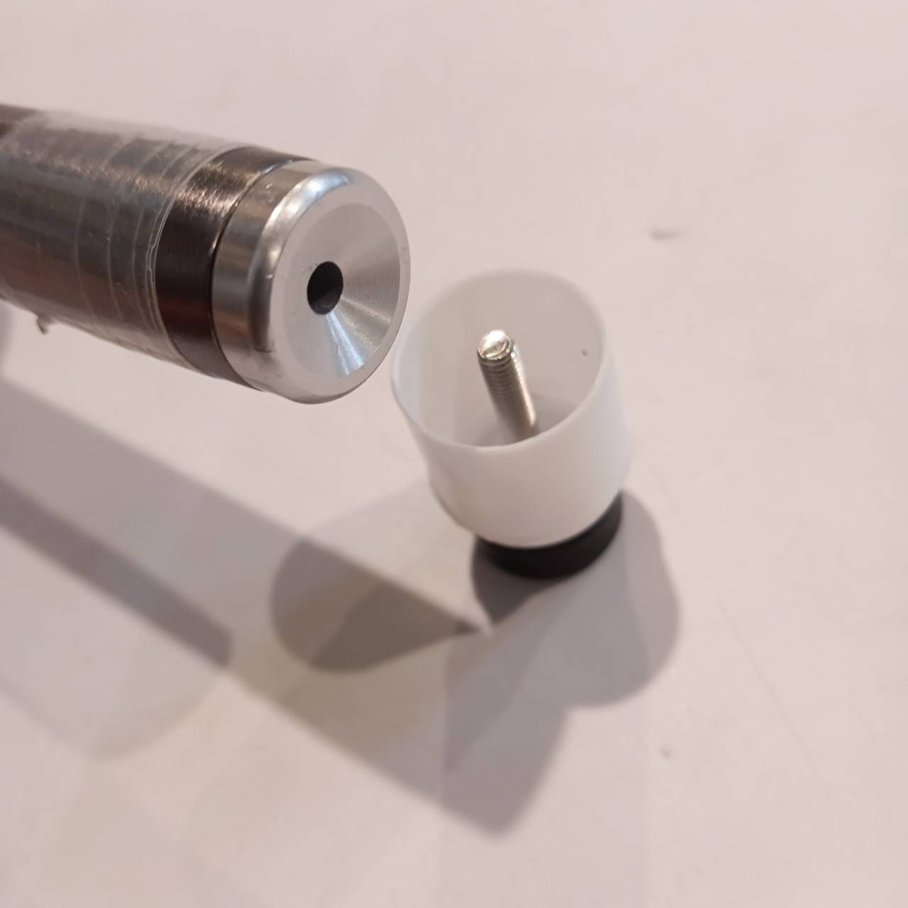 地面接地面近くに、白いキャップのようなものが装着されておりますが取り外しは可能でございます。