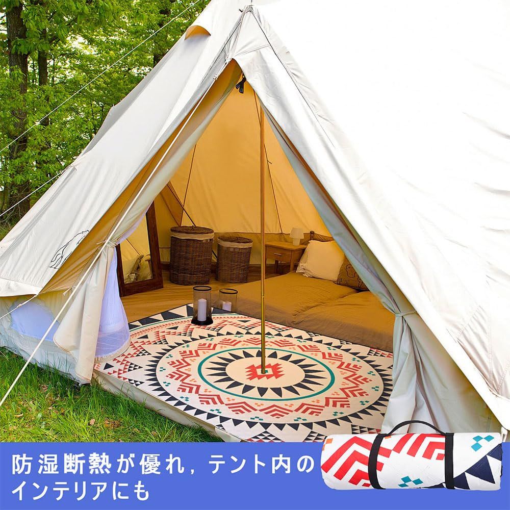 【防湿保温性が優れる素材採用】 裏面にはアルミ蒸着フィルムを使用、保温しながら防水性も優れ、テント内グランドシートとしてもおすすめです。特にNative Shineのデザインはシート自体が長方形ですが、丸型の設計がワンポールテントに最適です。ぜひお試してください。