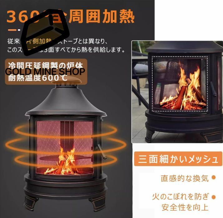 薪ストーブ 1台2役 ファイヤーピット 煙突付き キャンプ 薪暖炉 ロケットストーブ ウード暖炉 二次燃 焚き火台 アウトドア まきすとーぶ 無煙で環境に優しい 料理 BBQ 調理 暖房 パティオヒーター