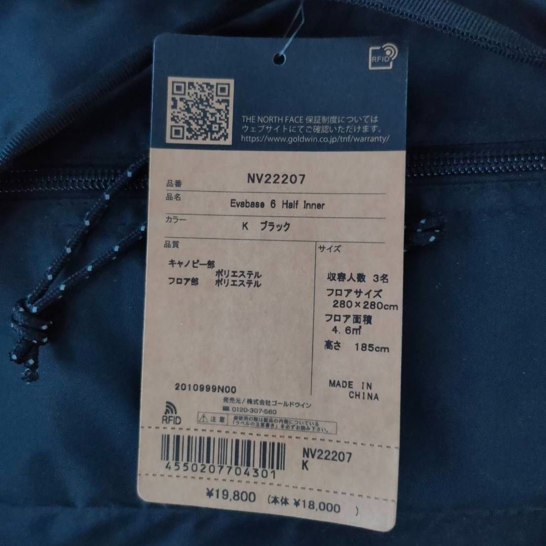 未拆封 THE NORTH FACE インナーテント Evabase 6 Half Inner エバベース6ハーフインナー NV 22207 ブラック One Size ザ ノースフェイス