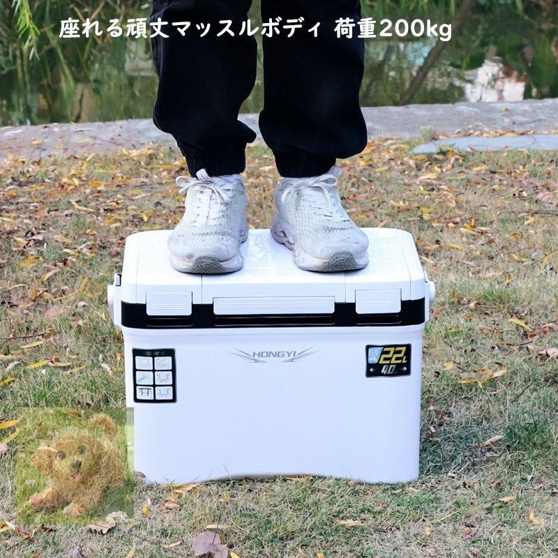 釣り用クーラーボックス 容量22 L 座れる頑丈マッスルボディ 防水 断熱材保温保冷 ハンドル 水栓 肩ベルト付き 天窓なし 釣り保冷力48 h 白