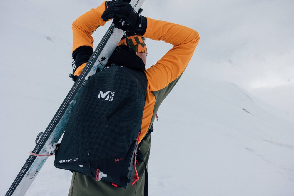 着脱式クランポンボックスを搭載した超軽量山岳スキー用リュックサック取り外し可能なダイレクトアクセスクランポンコンパートメントを搭載した、ISMF公認の超軽量かつ高機能なスキーマウンテニアリング向けリュックサックです。ナイロンとダイニーマ生地を組み合わせ、背面にはEVAフォームパネルによって軽量ながら十分な耐久性と快適性を提供します。さらに立ったままスキーをパックに固定できるスキーホルダーなど、素早い行動を可能にする便利な機能も満載です。