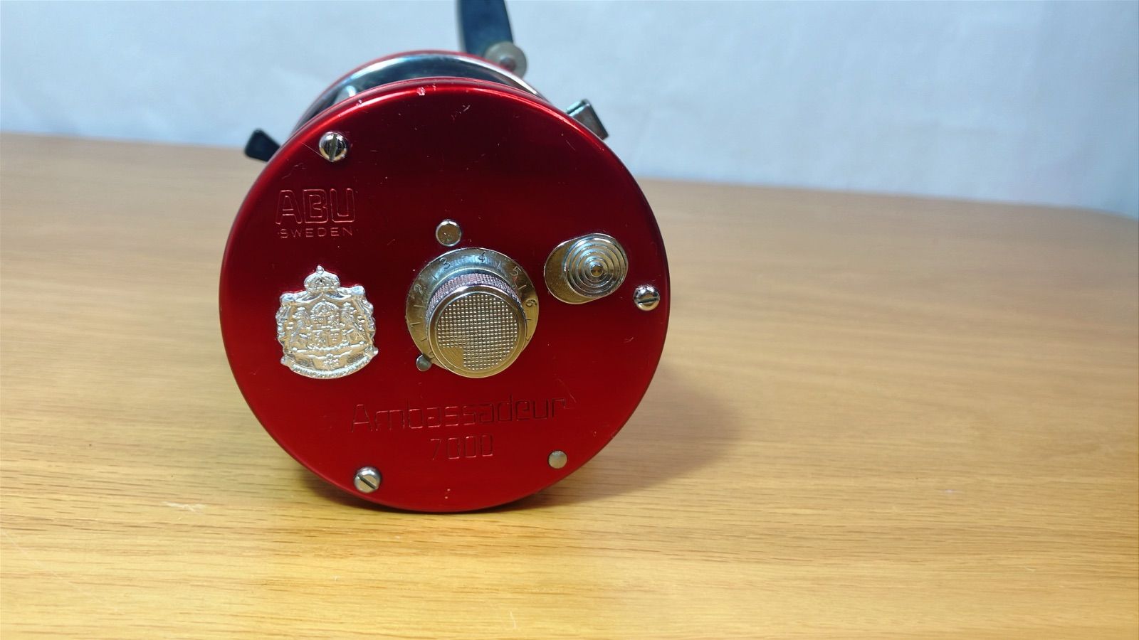 ABU Garcia(アブガルシア)Ambassadeur 7000、スウェーデン製のオールドベイトリールです。赤のメタリックボディが美しく、クラシックながら堅牢な作りが魅力です。コレクションはもちろん実釣にもおすすめです。