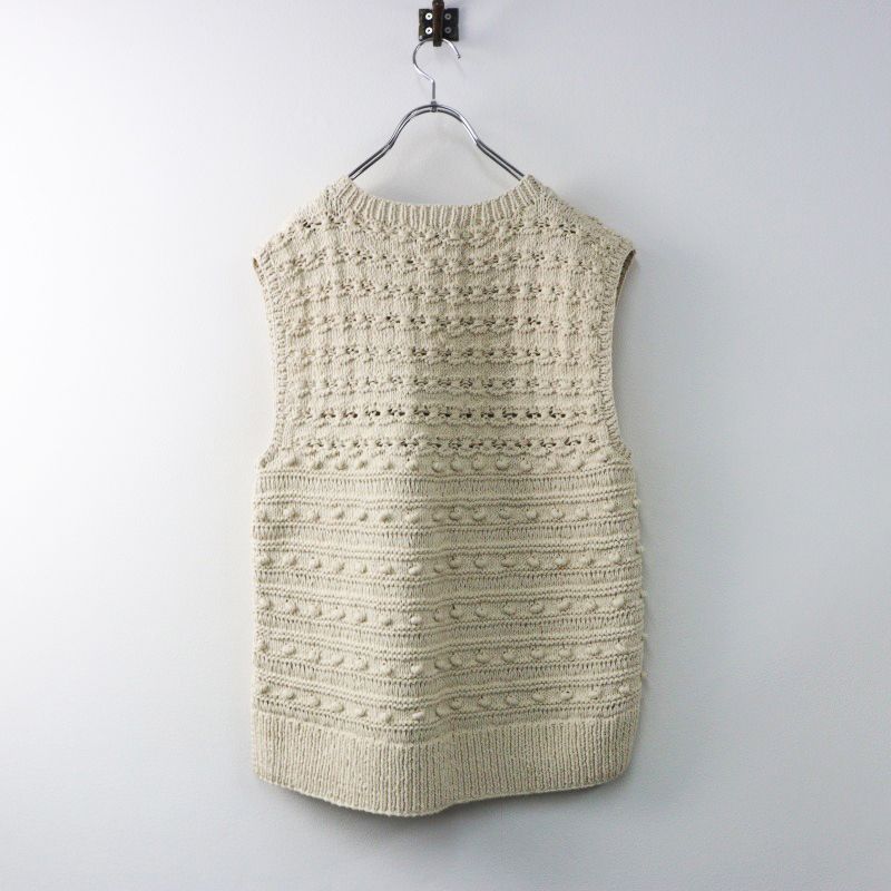 【品名】ネパール製 2023SS ハグオーワー HUG O WaR フラワー&ポップコーン編みハンドニットベスト F/ベージュ トップス