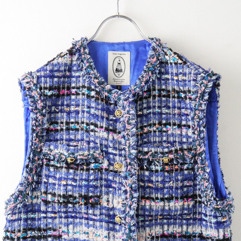 【品名】人気 ルールロジェット ルルロジェッタ leur logette ツイード ノースリーブジャケット 1/ブルー ベスト