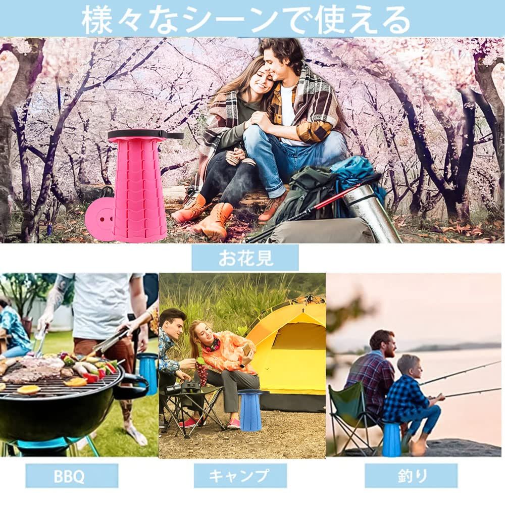 &持ち運び便利】ポータブルチェアは二つの持ち運び方法があります。チェアにはロープがあり、椅子として使う時に上の板に回って飾り用です。外出の時はロープを引いて、椅子がバッグのように肩にかけることができます。外観は本当のバッグみたいです。それにもう一つの小さいロープがあり、片手で持つのも便利です。収納スペースを食わず持ち運びに便利で楽です。もちろん、リュックに入れても平気に持ち運びできます。【多様なシーンに適用】簡単に好きなサイズに伸縮自在のポータブルスツールで、BBQ・キャンプや写生、釣り、旅行、登山、運動会、花火など日常でも幅広くお使いいただけるスツールです。屋内で椅子としての使用はもちろん、踏み台