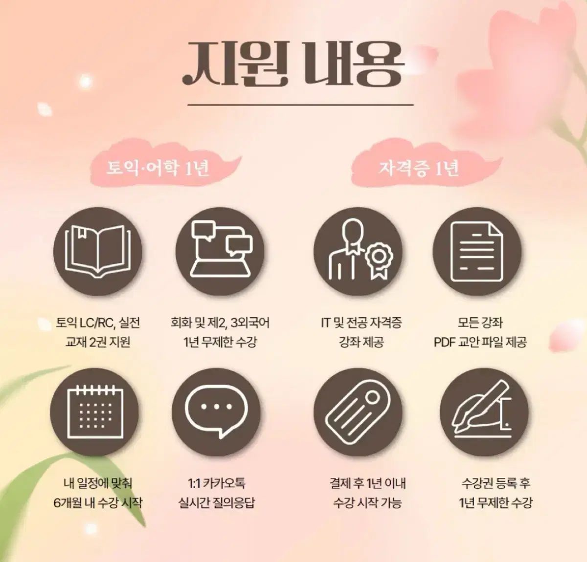 ほとんどの言語と資格証の講義を受けられます。