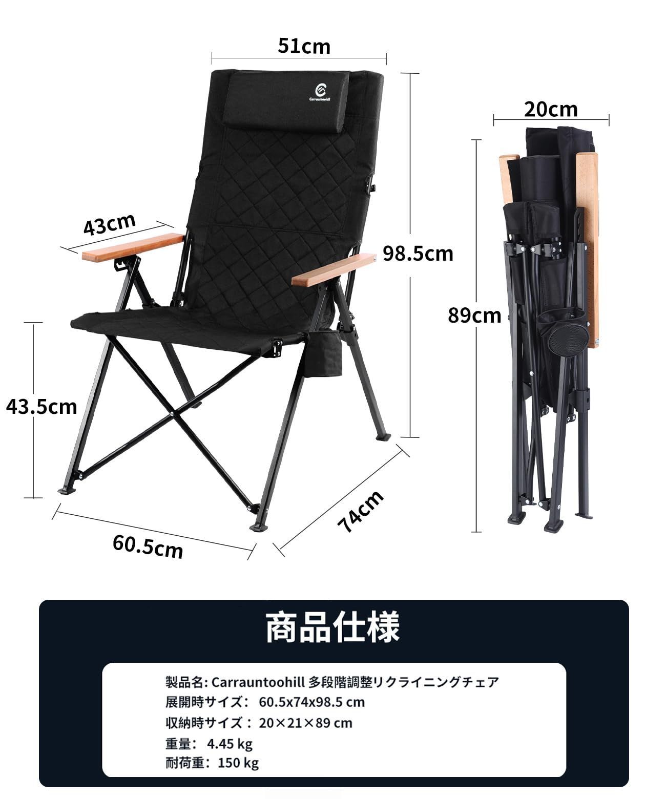 【自由に?斜角度調整】Carrauntoohillアウトドアキャンプリクライニングチェアは、お好みやシーンに合わせて背もたれのリクライニング角度を自由に調整できます。広くて柔らかいヘッドレストは高さ調節が可能で、さまざまな身長の方にフィット。取り外して腰当てとしても使用でき、全身をリラックスさせる快適な座り心地を実現します。キャンプや焚き火、リビング、ベランダ、オフィスなど、あらゆるシーンで活躍するアウトドア チェアです。