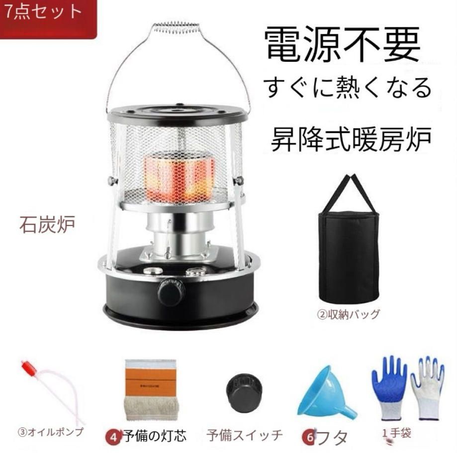 これは高さ調整可能な石油ストーブで、電源不要のポータブル暖房器具です。
