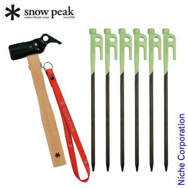 スノーピーク ペグハンマー PRO.S &カラーステーク30 グリーン 6本セット[NSET-202311N]