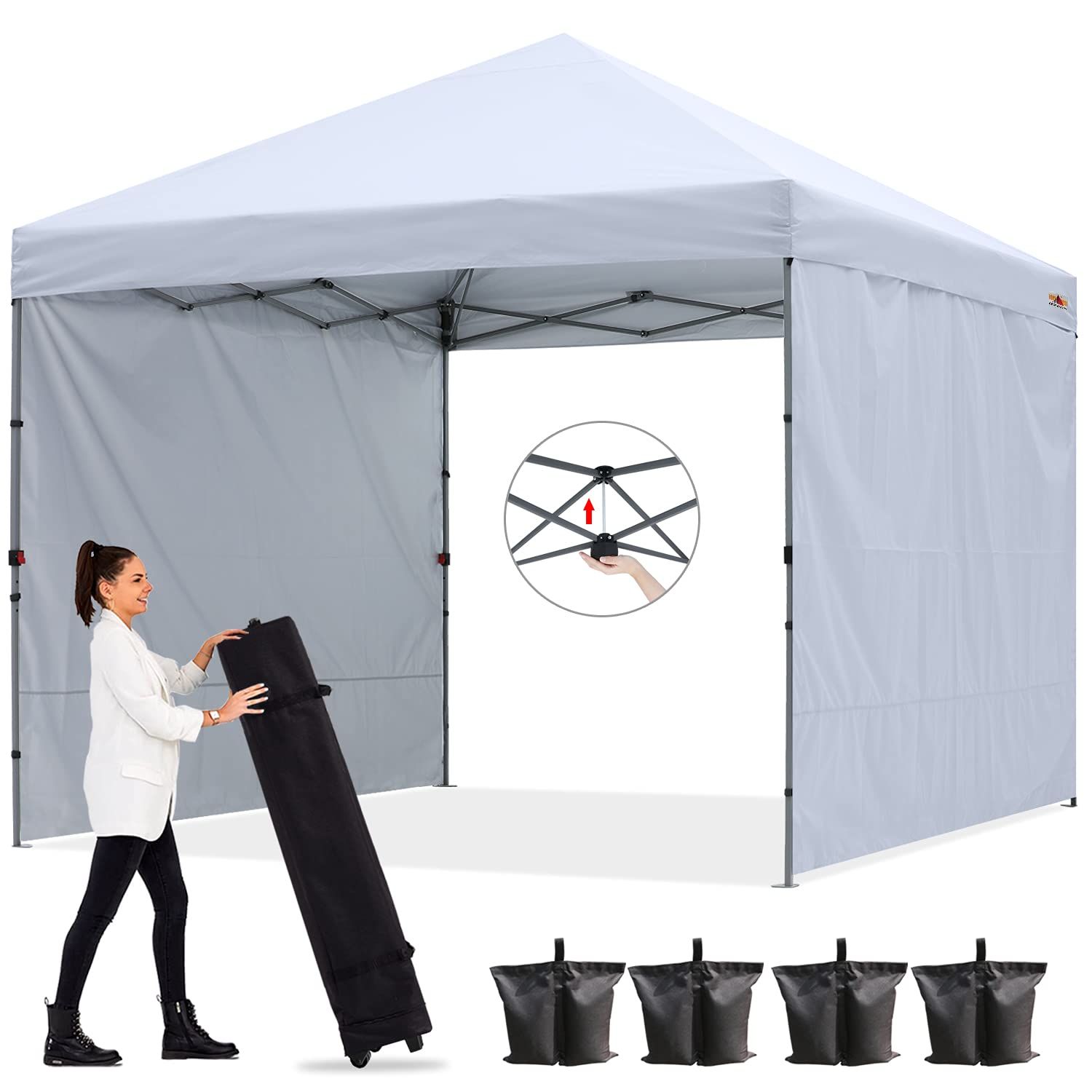ワンタッチテント タープ テント 3 mx m 2.5 簡易テント 大型 サイドシート センターロック 三段階調節 耐水 UVカット 日除け 遮熱 紫外線カット 耐風性 組立簡単 キャスターバッグ付き ホワイト