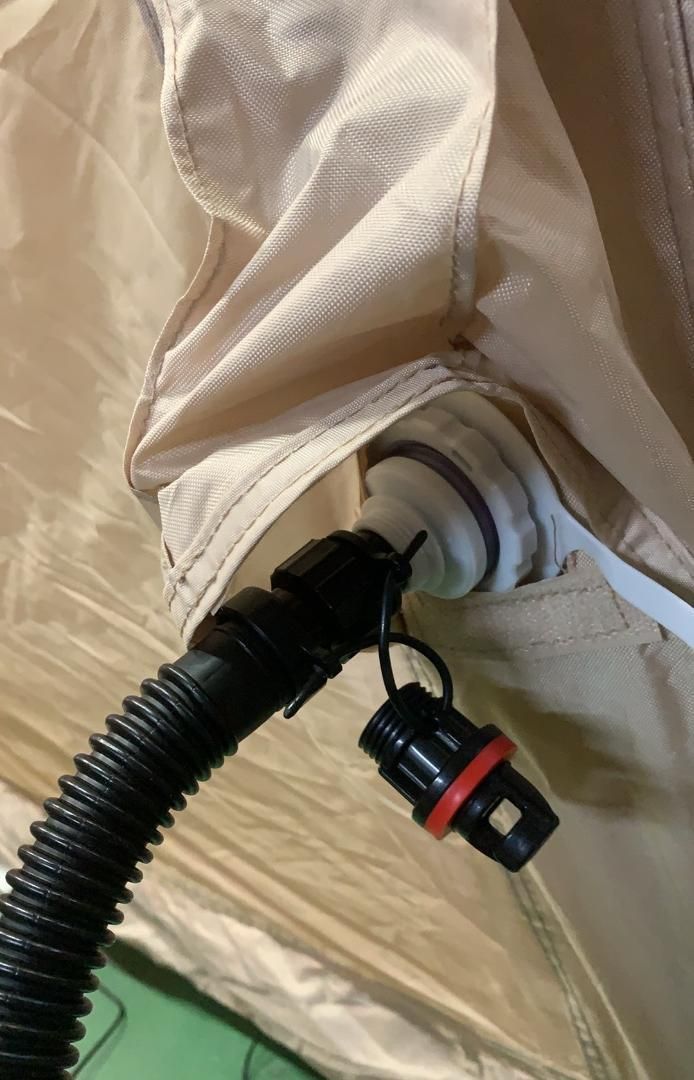 【空気注入5分完成|一人でも簡単設営】二重層バルブ設計。パイプに空気を入れるだけで柱が自動立ち上がり(※過膨張注意)、骨組み不要で5分以内に完成。