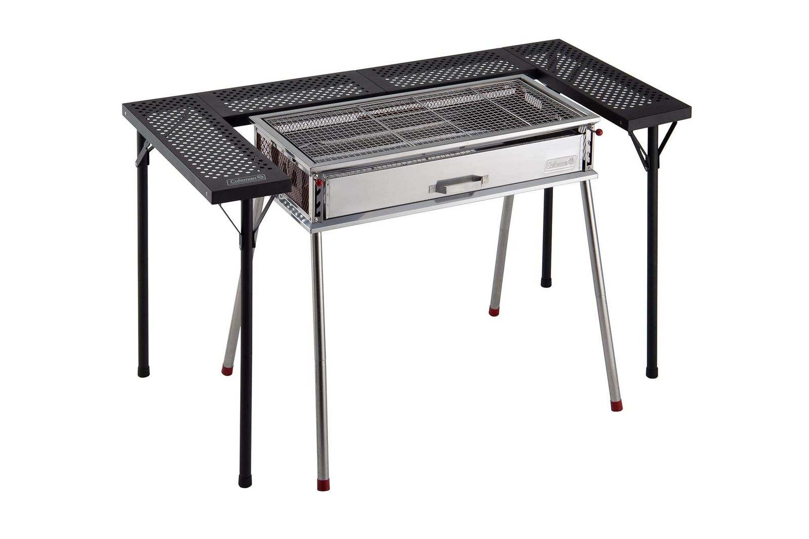 コールマンBBQグリルに合う2段階調整可能なBBQテーブルミニテーブルを付けて大きなテーブルとしても利用可能