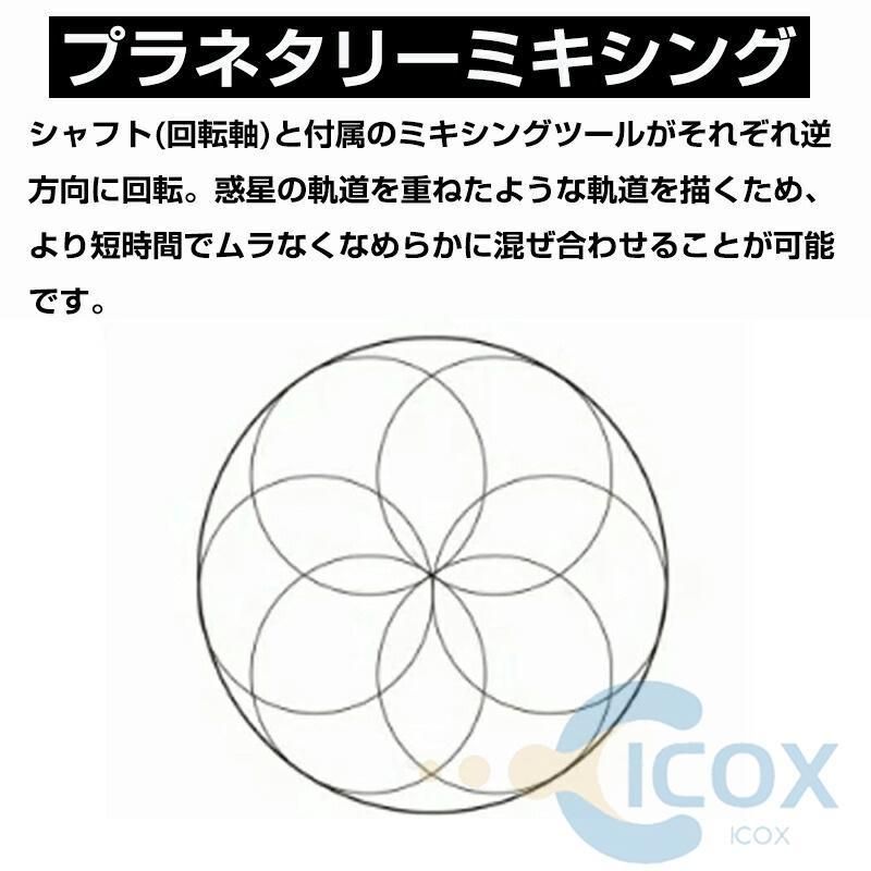 1、一台三役、三種類の攪拌機能:「練る」「混ぜる」「泡立てる」。家庭ではもちろん、業務用としても導入可能。ケーキ屋、パン屋、飲食店、食堂、実験室での攪拌機器、工業利用など。